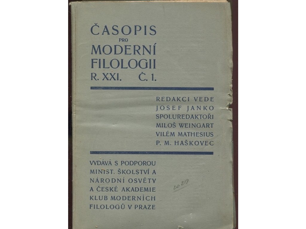 | Nakladatel: | s podporou Minist. školství a Národní osvěty a 4eské akademie Klub moderních filologů v Praze |