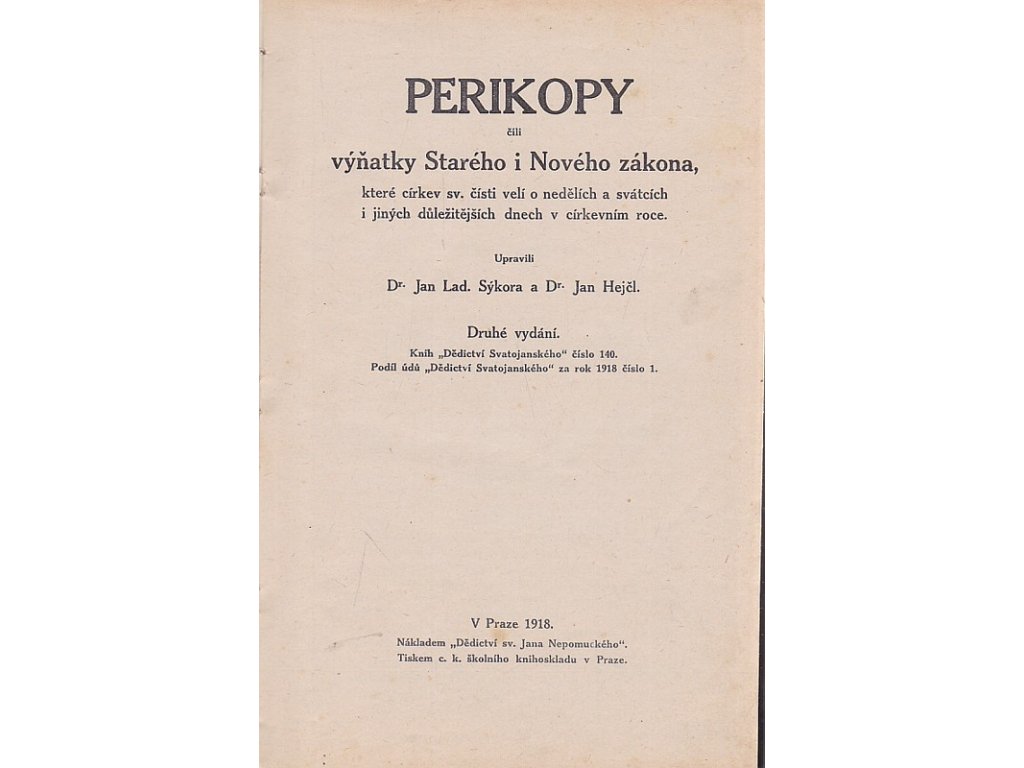 Perikopy, čili, Výňatky Starého i Nového zákona, které církev sv. čísti velí o nedělích a svátcích i jiných důležitějších dnech v církevním roce