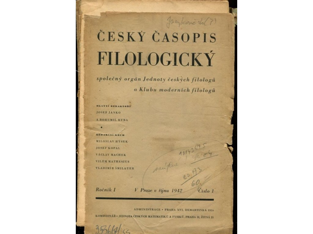Český časopis filologický - společný orgán Jednoty českých filologů a Klubu moderních filologů, ročník I, 1942