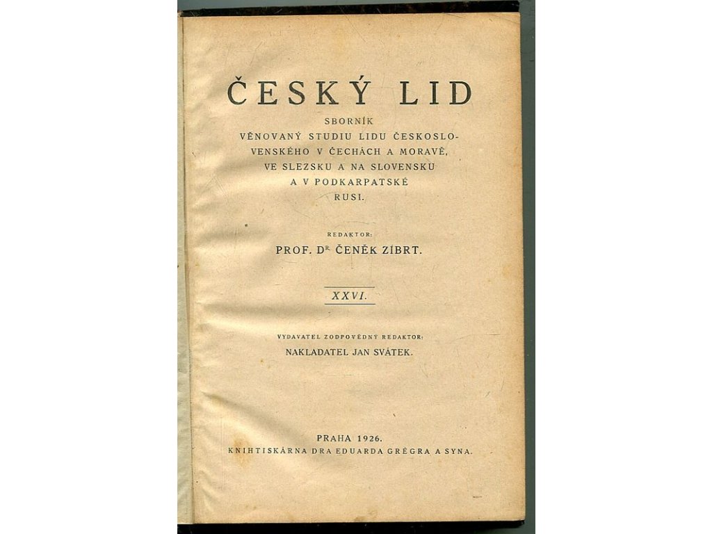 Český lid - Sborník věnovaný studiu lidu českého v Čechách, na Moravě a ve Slezsku a na Slovensku a v Podkarpatské Rusi - ročník XXVI.