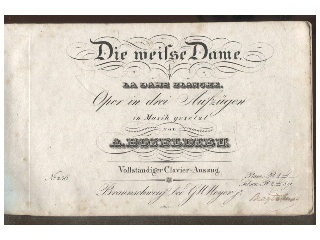 Die weisse Dame - la dame blanche - Oper in drei Aufzugen in Musik gesetzt von A. Boieldieu - Vollstandiger Clavier-Auszung - Braunschweig bei GM Meyer jr.