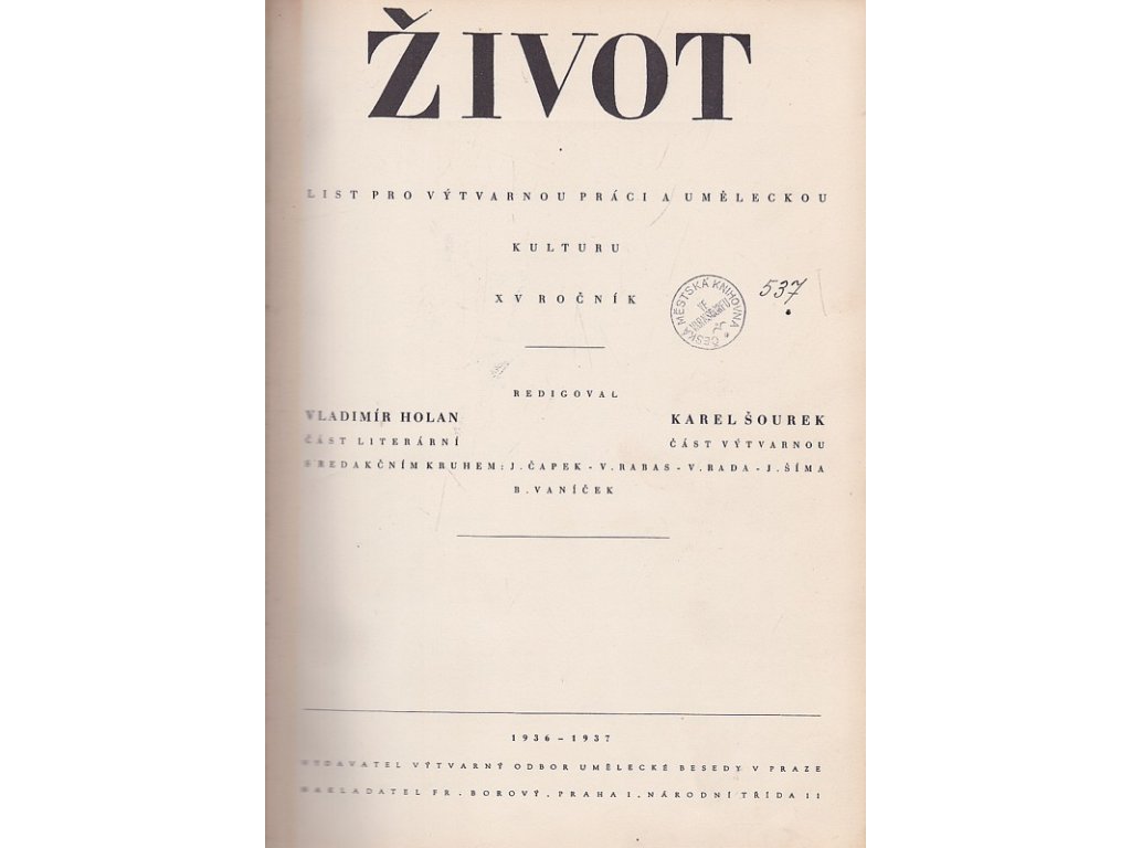 Život - list pro výtvarnou práci a uměleckou kulturu XV 1936-1937