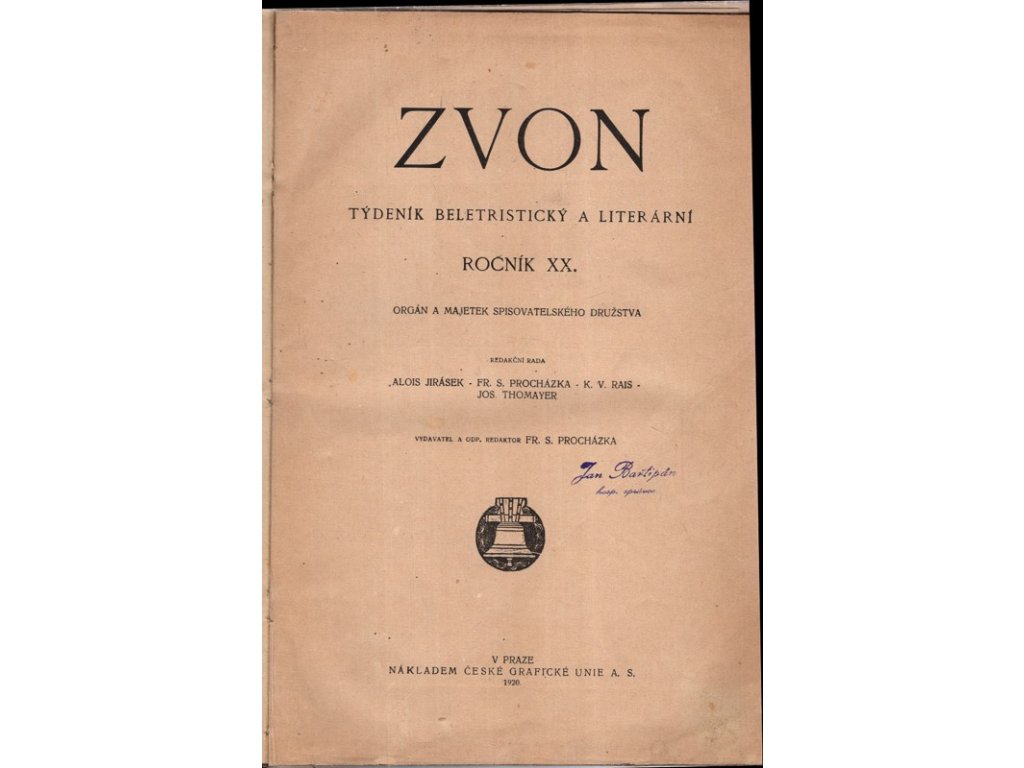 Zvon, ročník XX. : týdeník beletristický a literární